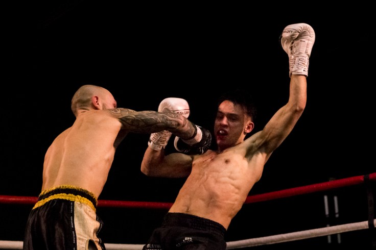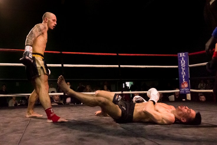 “But halfway through the round, after a barrage of punches and knees the Suggy’s Gym fighter landed a perfectly timed knee to his opponent’s chin, which sent him to the canvas. This time Blayne didn’t beat the count, the referee Paul Nicholls waved it off and Chace was declared the winner of the Ramon Dekkers Challenge belt by knock out.