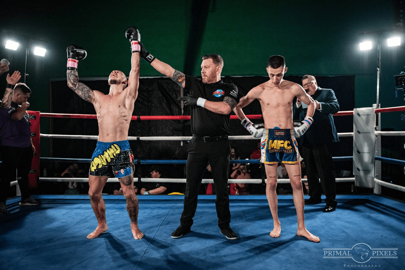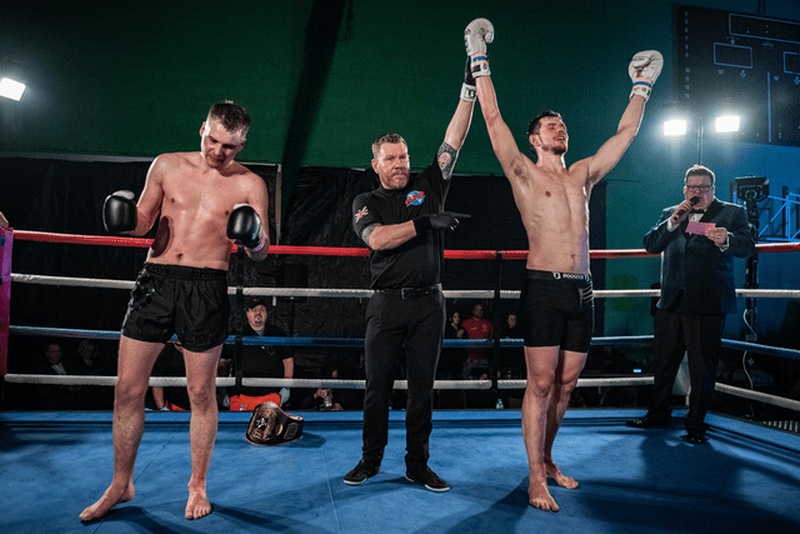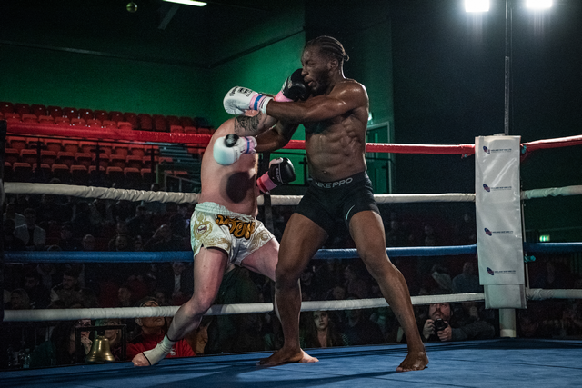 “In the other professional fight of the night, a three by three-minute contest between Mateo Capobianco from Pride Combat Athletics in Bracknell and Powers Martial Arts‘ Jordan Waring at -68kg that ended in a win by TKO for Jordan 1 minute 51 seconds into the first round.”